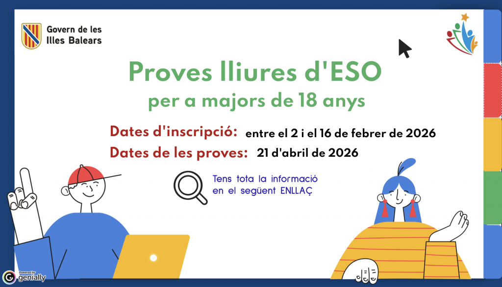 Atenció. S’ha obert el termini per a presentar les reclamacions sobre els Cens Electoral per a les futures votacions de la renovació del Consell Escolar del centre.Trobareu el cens electoral exposat en el primer pis de l’aula de Vila i, en la resta d’aules, consultau amb el professorat.