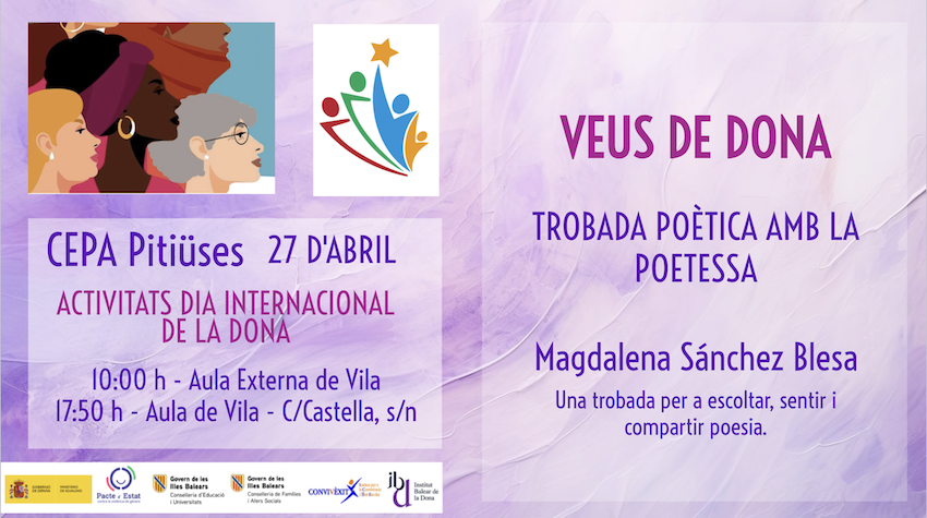 Durant els mesos de març i abril el CEPA Pitiüses farà una sèrie d’activitats per commemorar el Dia de la Dona. Us deixam els cartells informatius i una breu explicació. Tothom està convidat a venir i participar en totes les activitats.